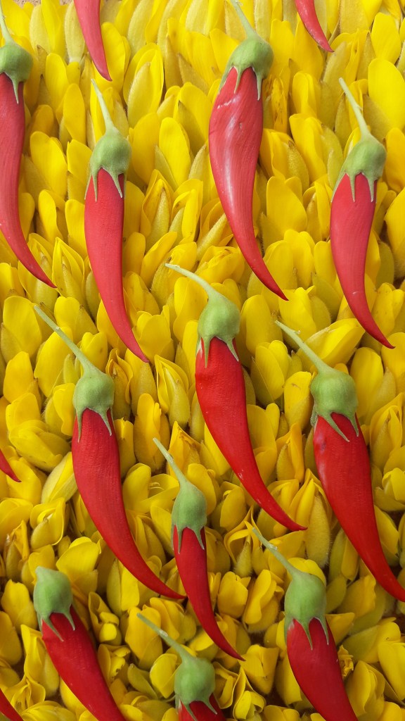 Beauty: our spectacular native ngutukākā/kākābeak (Clianthus puniceus), which is endangered in the wild. And the beast: exotic gorse (Ulex europaeus), invasive throughout New Zealand. Actually gorse isn’t necessarily a beast – it depends where it invades. It’s a nightmare for farmers where it takes over grazing land, but can facilitate native succession in some ecosystems.