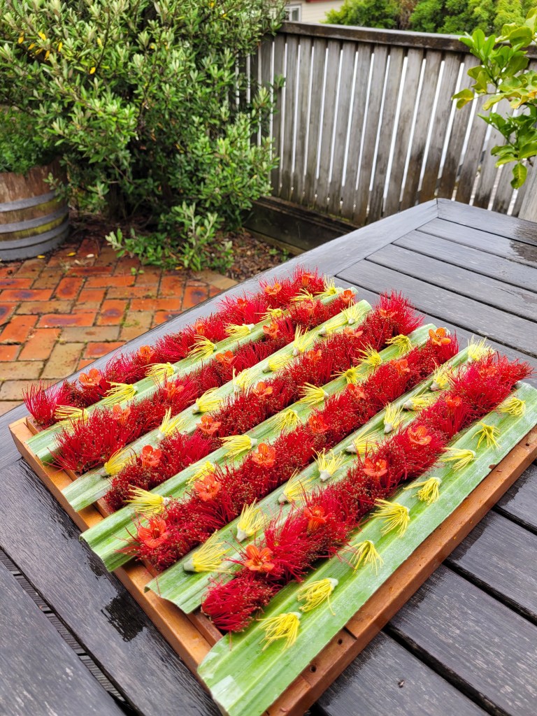 Pōhutukawa (Metrosideros excelsa) flowers (mostly red, but some yellow) are hugely abundant in Wellington around Christmas time. Also featuring Chatham Island kakaha/astelia (Astelia chathamica) leaves and the divine orange flowers of taurepo/NZ gloxinia (Rhabdothamnus solandri). All New Zealand natives. This pic also illustrates why I MUST get a better camera and lighting gear sometime soon…